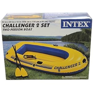 Challenger 2 Boat Kit - Manufacture ID: 68367EPChallenger 2 Set- Two person boat- Capacity: 375 lbs- Rugged super-tough vinyl construction- Three air chambers including an inner auxiliary air chamber in hull for extra buoyancy- Fast-fill fast-deflate Boston valves on two main hull chambers; doulbe valves on other chambers- "Double-quick" double action air pump- One pair of French oars with oar retainer ring- Inflatable floor for comfort and rigidty- All-around grable line- Welded-on oar locks- Grab handle on bow - Oar holders